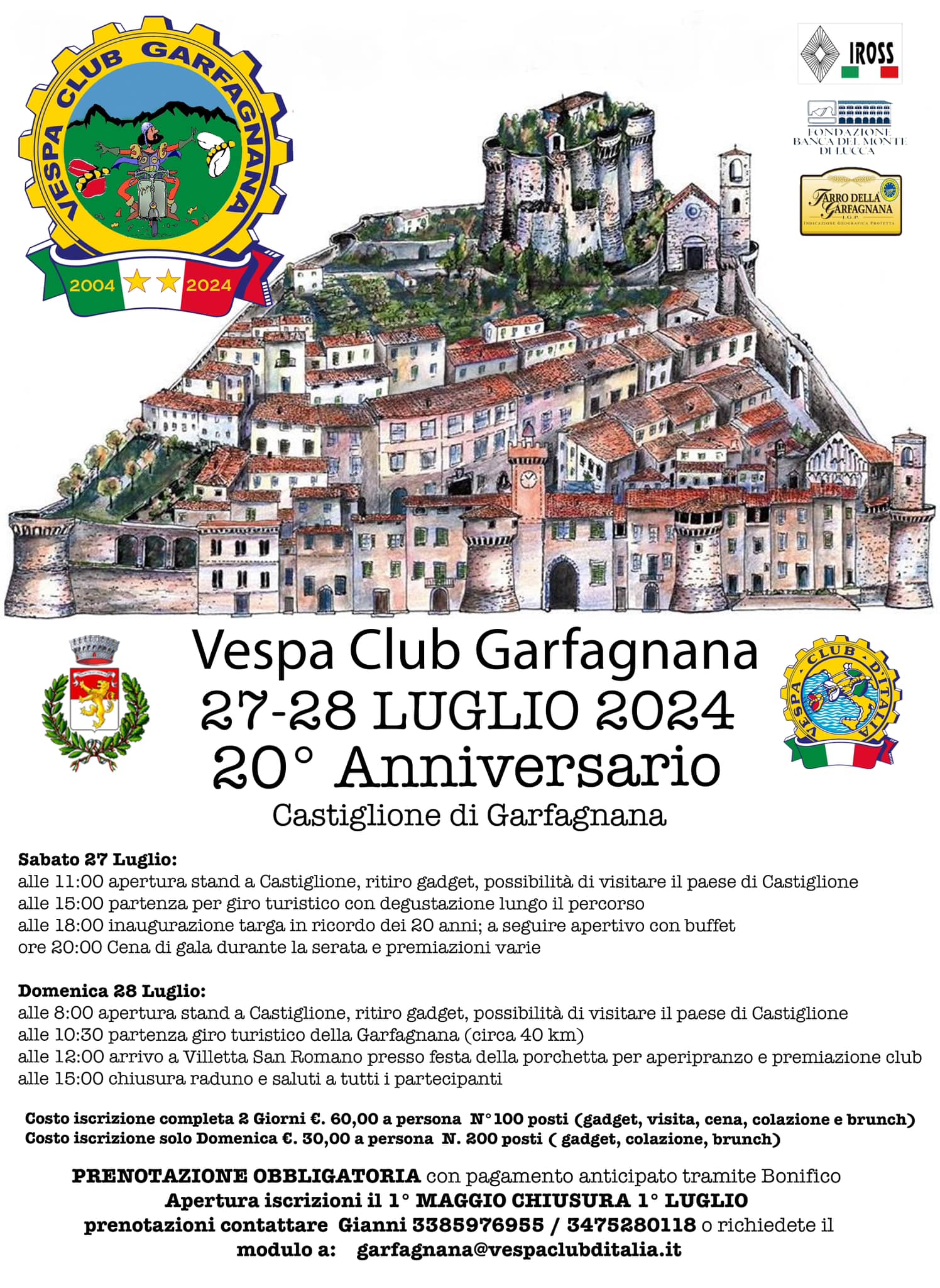 Per maggiori info e prenotazioni: Gianni +39 338 5976955 – +39 347 5280118 – email garfagnana@vespaclubditalia.it