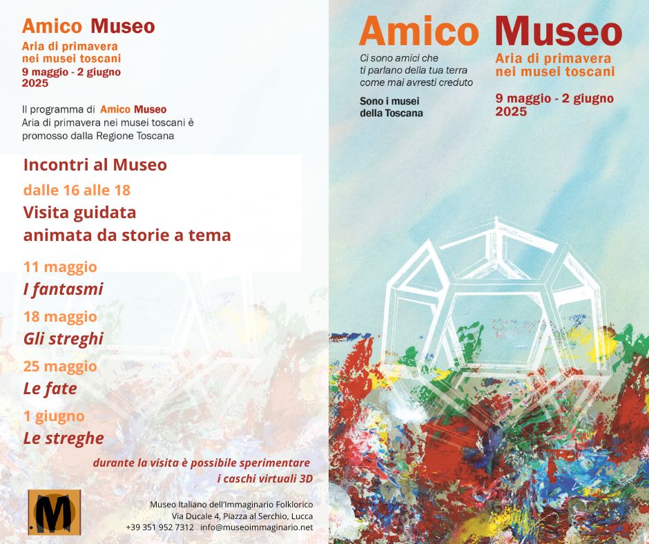 Il Museo Italiano dell’Immaginario Folklorico aderisce all’edizione 2025 di amico museo, campagna di promozione del patrimonio museale della Regione Toscana che si svolge dal 9 maggio al 2 giugno, un’iniziativa consolidata e di grande successo diffusa sul territorio, che rappresenta un’occasione speciale per valorizzare i musei e le loro attività.