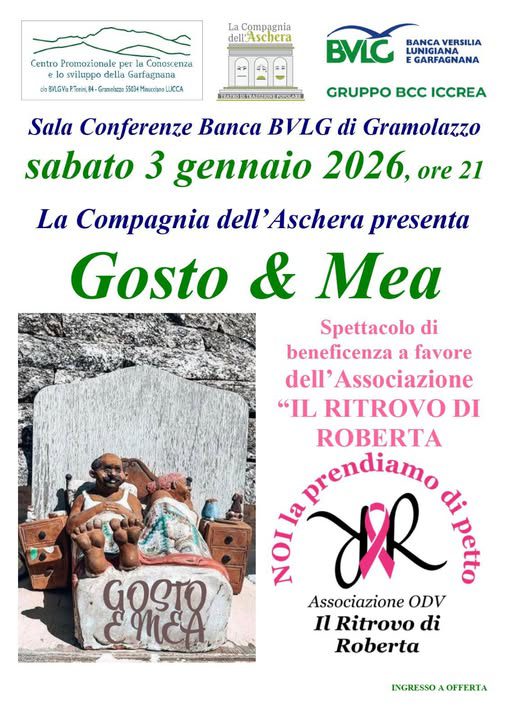 La Compagnia dell’Aschera di Corfino, presenta uno spettacolo in dialetto Garfagnino. Ore 21 presso la sala conferenze della Banca BVLG di Gramolazzo.