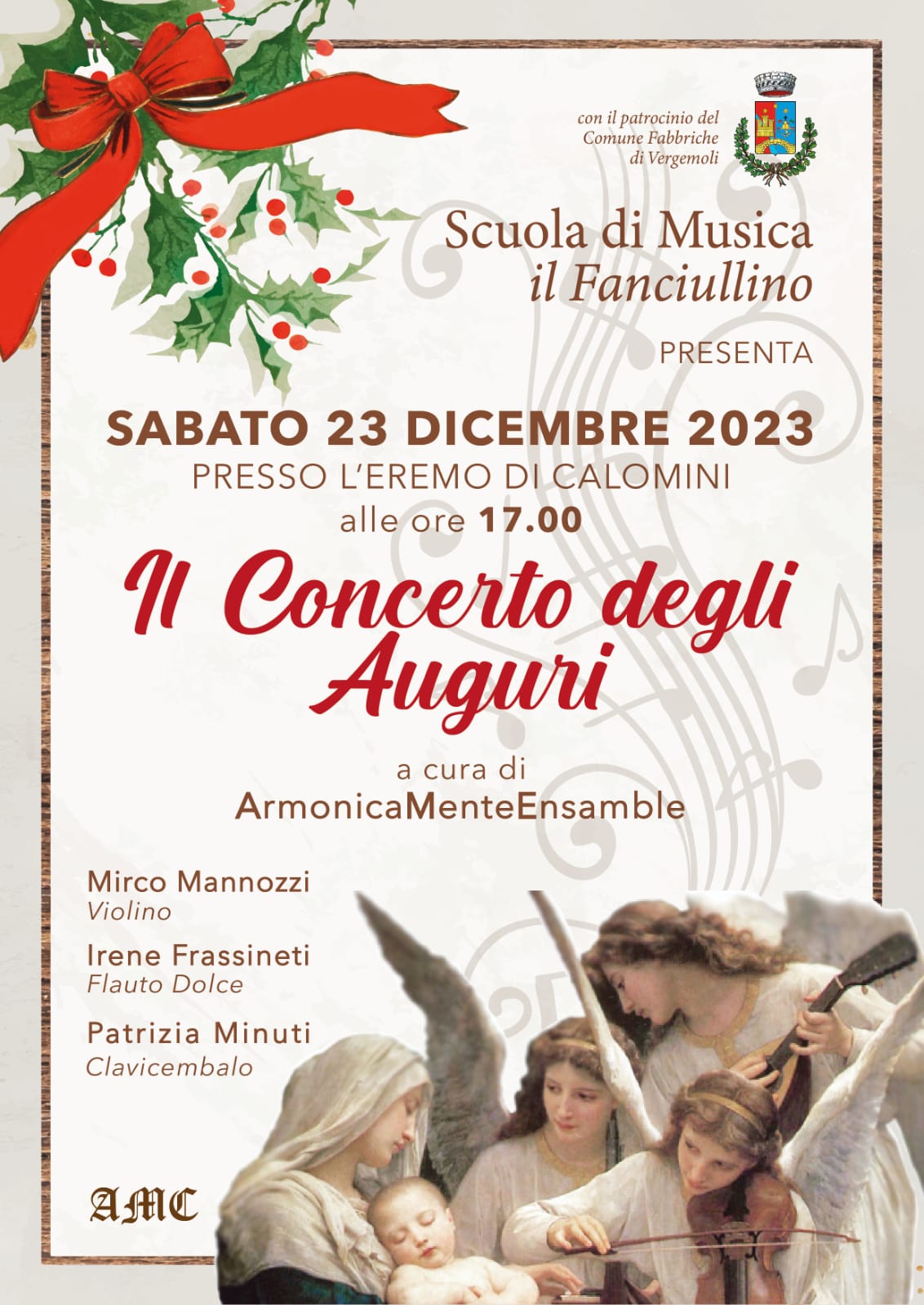 Alle ore 17.00 presso l’Eremo di Calomini si terrà il concerto degli Auguri a cura di ArmonicaMenteEnsamble