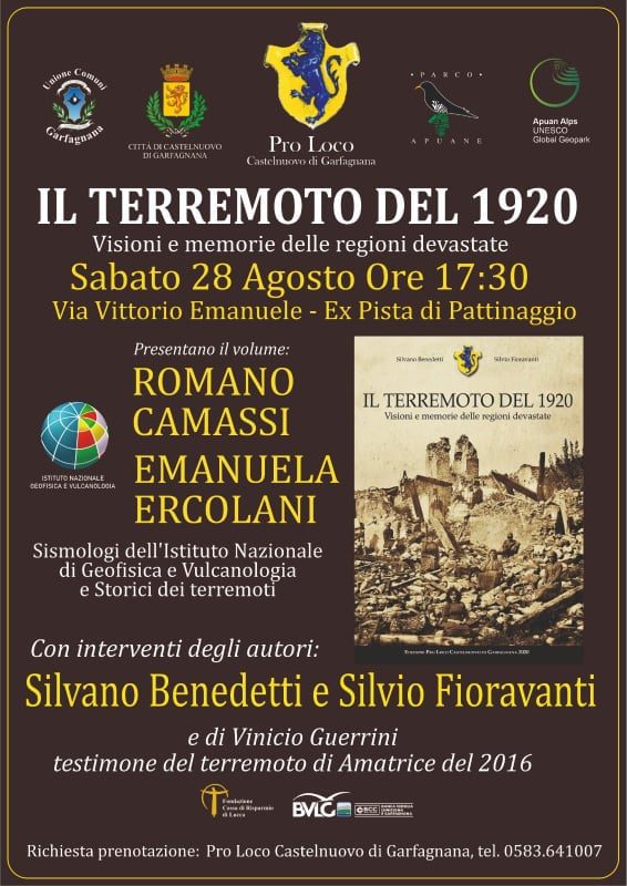 A Castelnuovo di Garfagnana , ex pista di pattinaggio, presentazione del volume “Il terremoto del 1920, visioni e memorie delle regioni devastate” di Silvano Benedetti e Silvio Fioravanti.