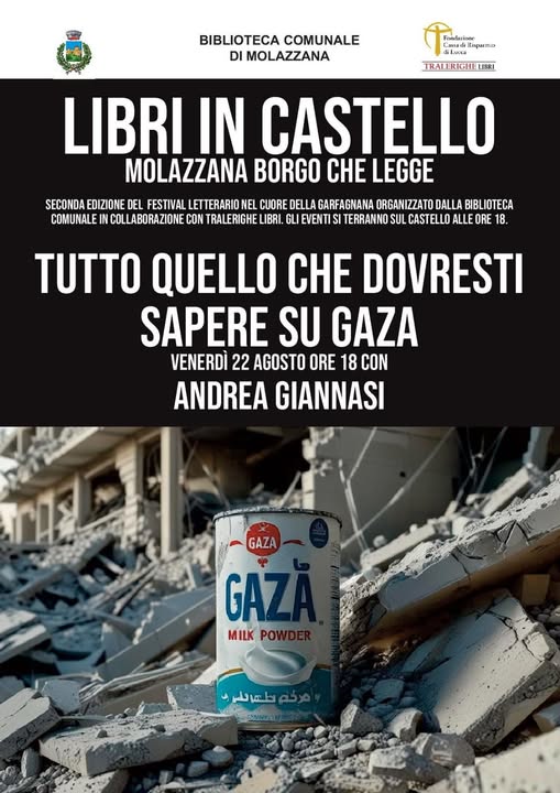 Nell’ambito della 2^edizione del Festival Letterario “Libri in Castello. Borgo che legge” organizzato dalla Biblioteca comunale in collaborazione con Tralerighe libri e libreria Poli di Barga alle ore 18.30 si terrà l’incontro con Andrea Giannasi Tutto quello che dovresti sapere su Gaza
