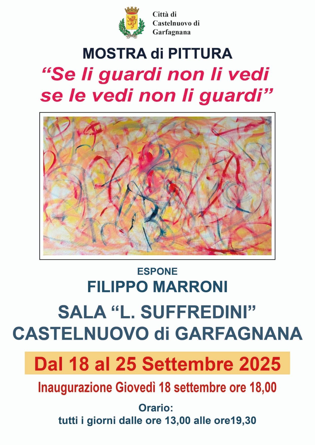 Presso la Sala L. Suffredini si terrà la mostra di pittura “se li guardi non li vedi, se li vedi non li guardi” di Filippo Marroni.