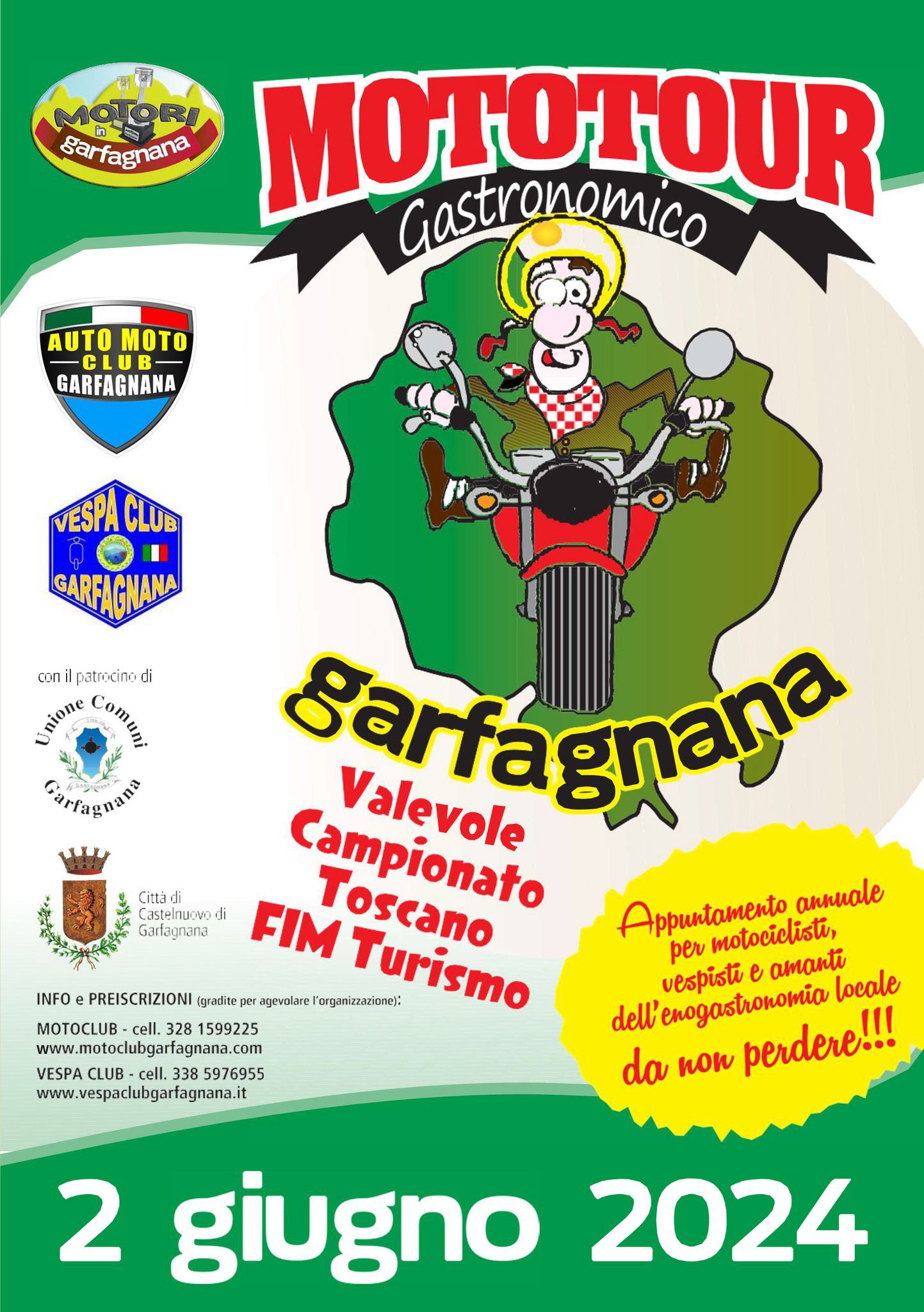 Per info e iscrizioni: Motoclub 328 1599225 – Vespaclub 338 5976955