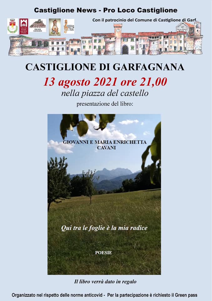 Alle ore 21.00 nella Piazza del Castello si terrà la presentazione libro di poesie di Giovanni e Maria Enrichetta Cavani dal titolo “Qui tra le foglie è la mia radice”