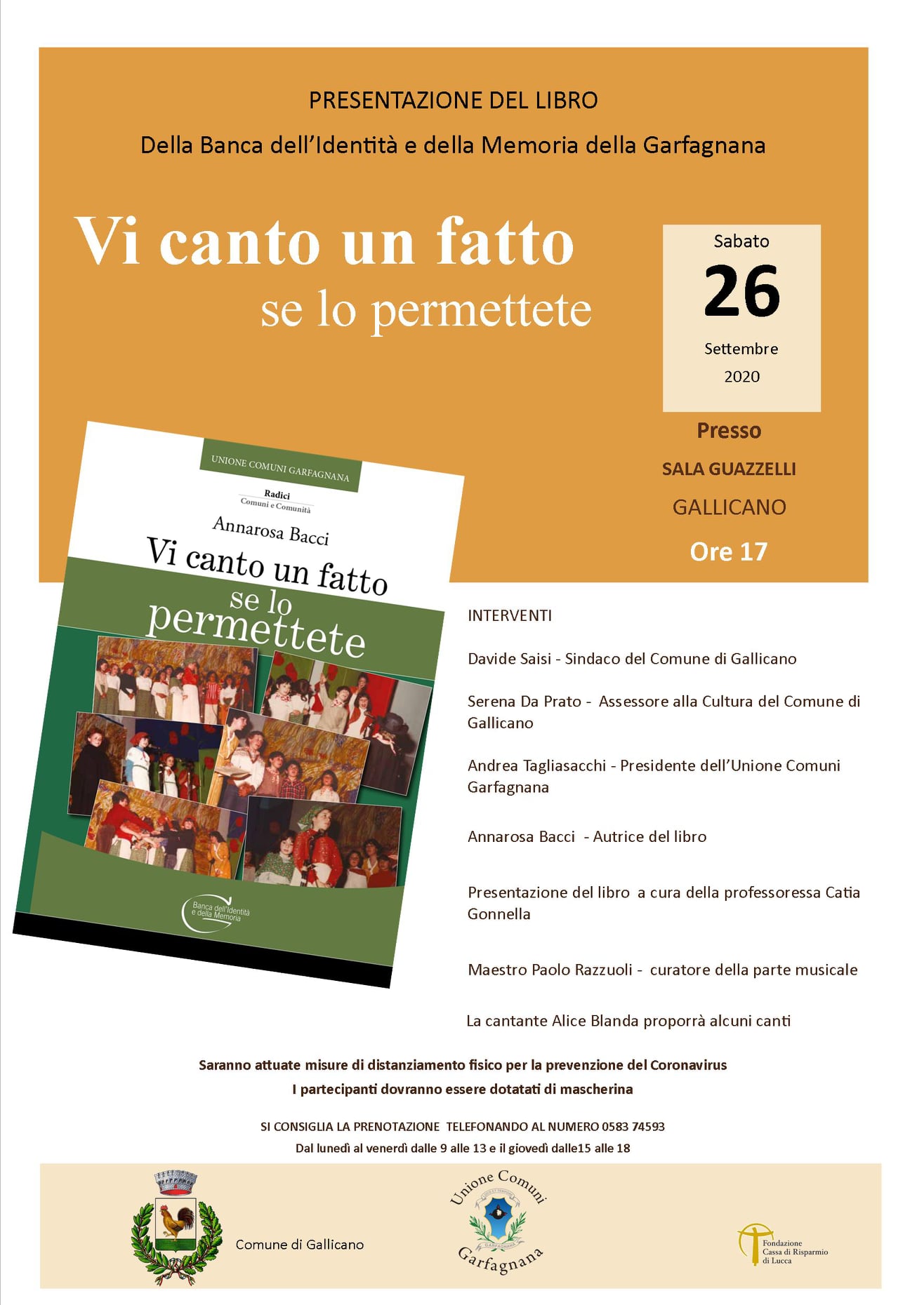 Alle ore 17.00 presso la Sala Guazzelli si terrà la presentazione del libro “Vi canto un fatto se lo permettete” di Annarosa Bacci.