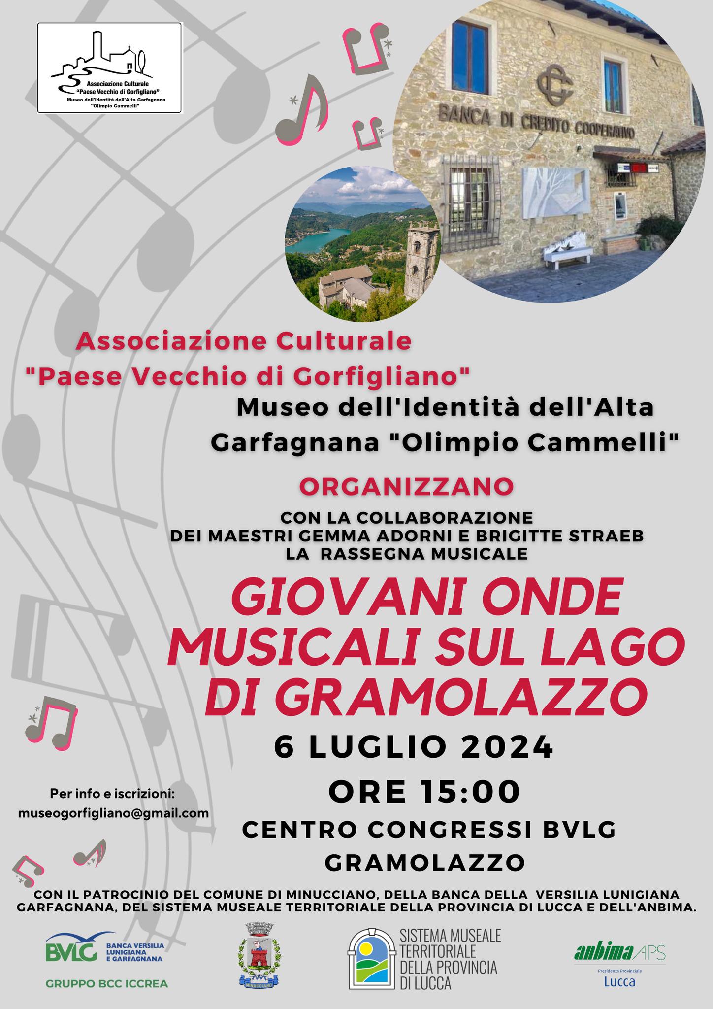 Alle ore 15.00 presso il centro Congressi BVLG il Museo dell’Identità dell’Alta Garfagnana “Olimpio Cammelli” e l’Ass. Culturale “Paese Vecchio di Gorfigliano” organizzano con la collaborazione dei Maestri Gemma Adorni e Brigitte Straeb la rassegna musicale “Giovani onde musicali sul Lago di Gramolazzo”