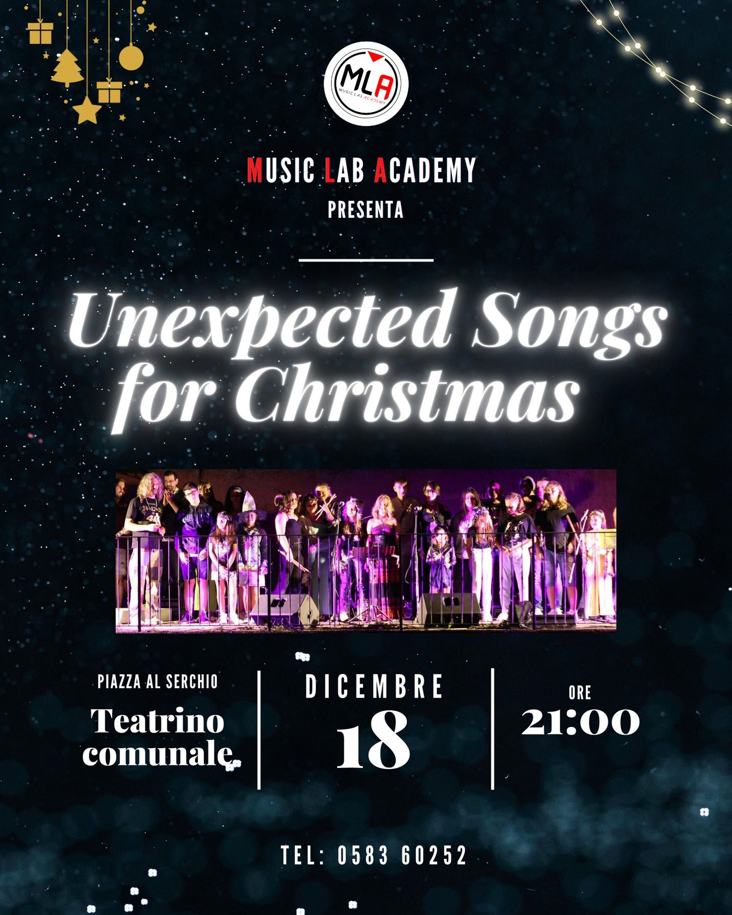 Alle ore 21.00 presso il Teatrino comunale di Piazza Al Serchio “Unexpected Songs for Christmas” a cura di Music Lab