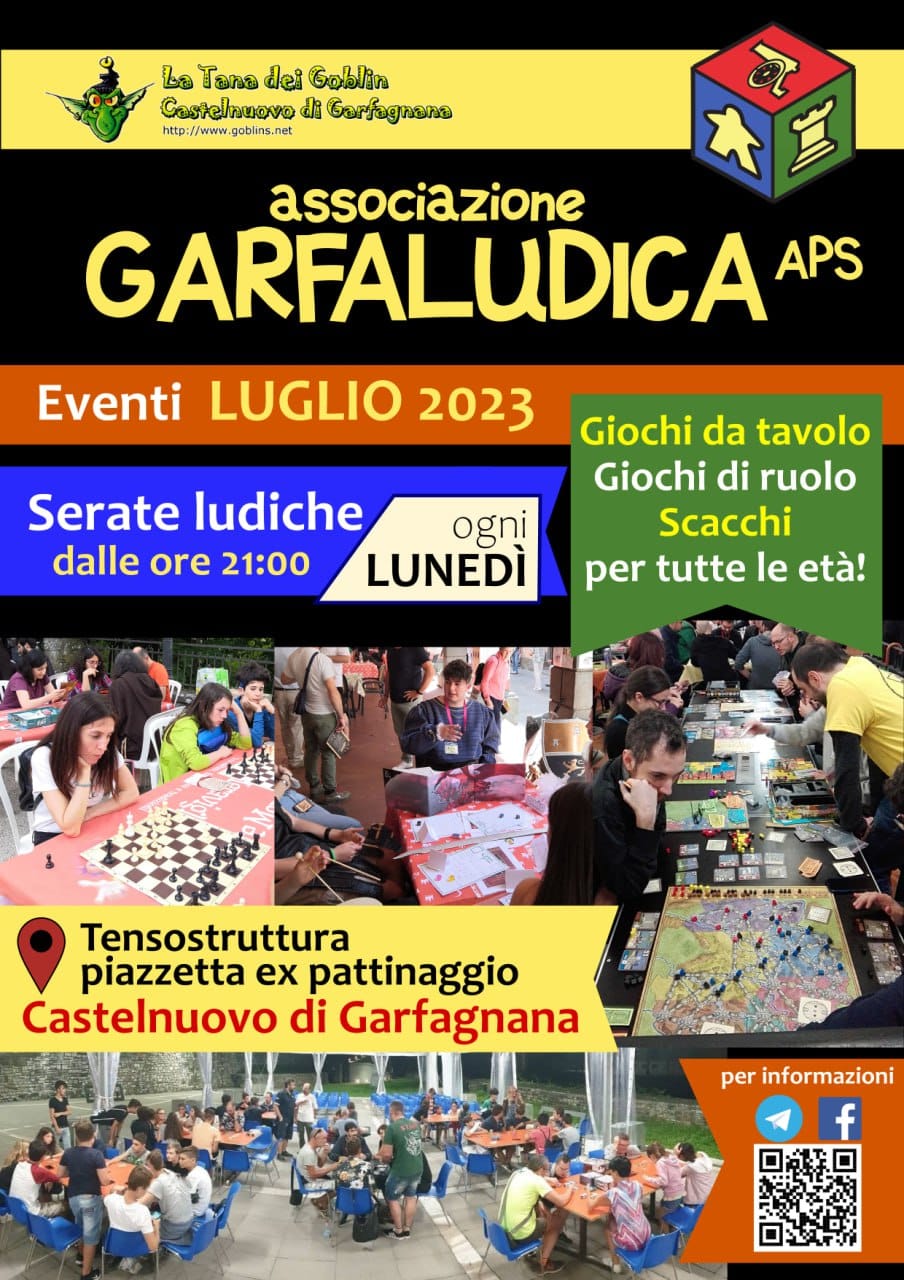 Nell’ambito della rassegna di eventi “Vivere Castelnuovo 2022”, presso la ex pista di pattinaggio alle ore 21.00 giochi da tavolo con Garfaludica