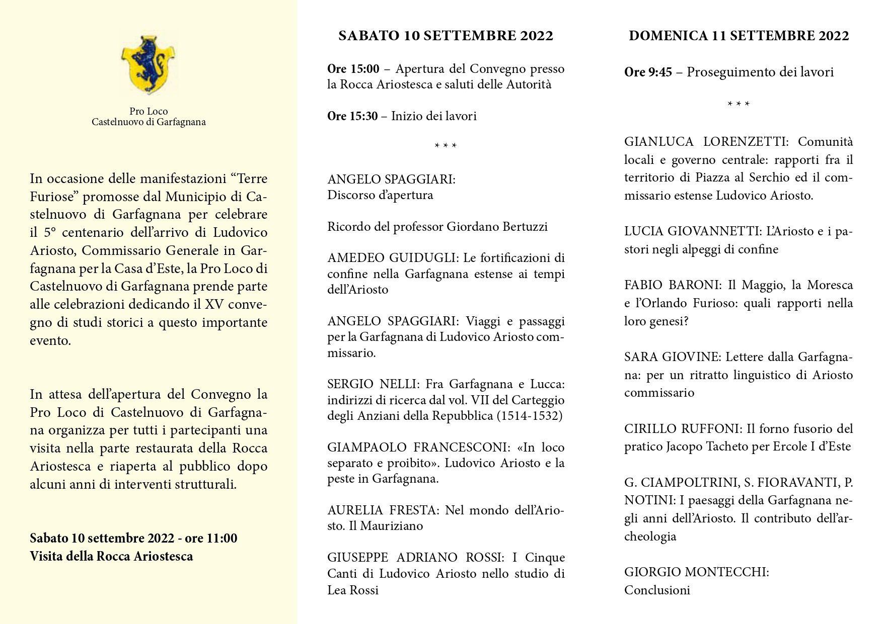 XV Convegno di studi storici – L’Ariosto Commissario e la Garfagnana del suo tempo