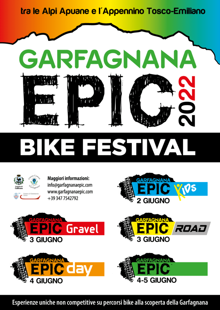 Quattro giorni, dal 2 al 5 giugno 2022, dedicati a tutti gli appassionati della bicicletta, un vero e proprio Bike Festival con gli eventi Epic Kids, Epic Gravel, Epic Road, Epic Day e Garfagnana Epic.