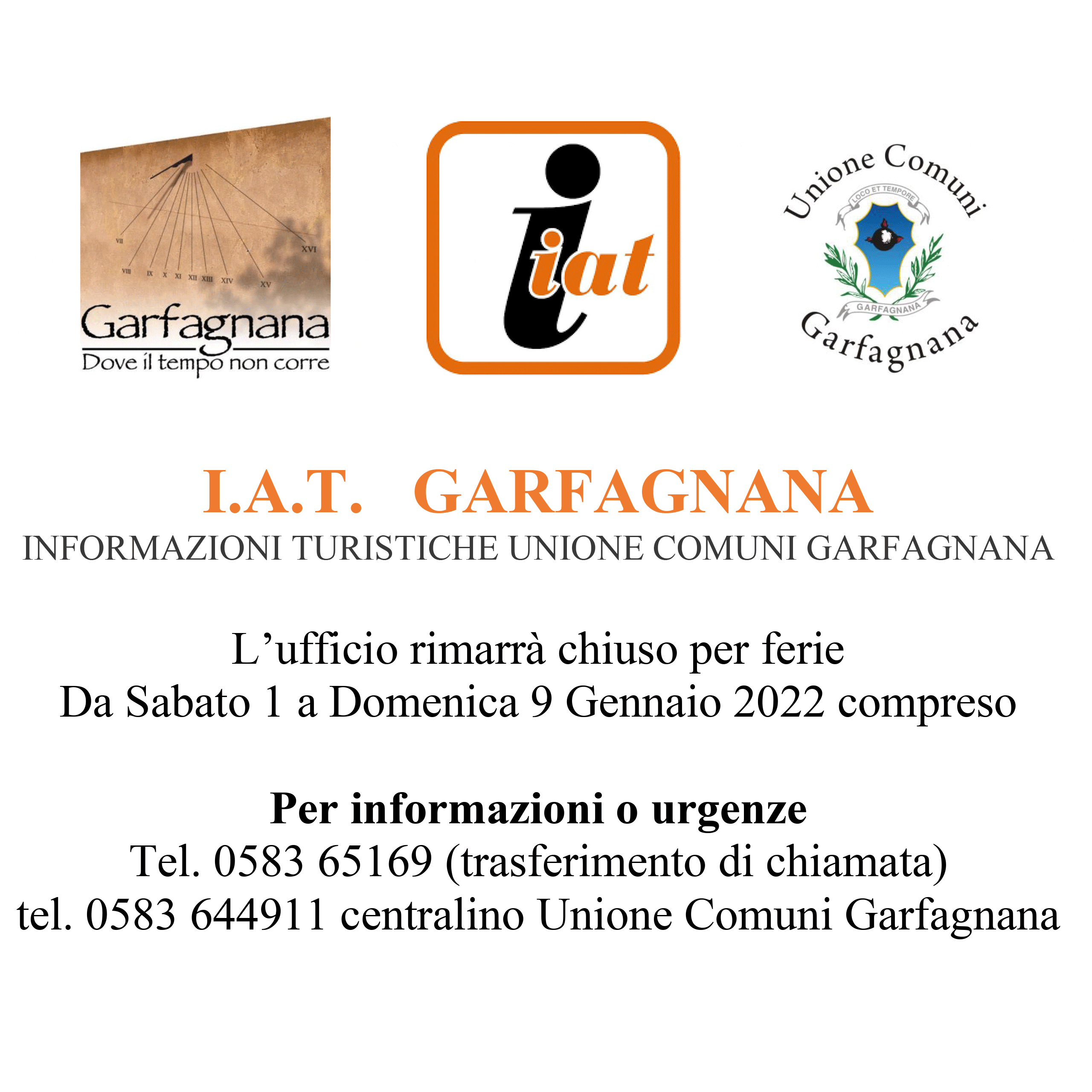Da Sabato 1 a Domenica 9 Gennaio 2022 compreso lo IAT Garfagnana sarà chiuso per ferie.