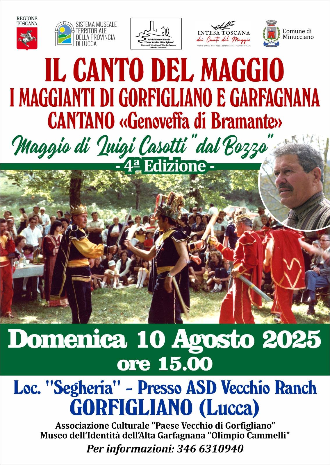 Alle ore 15.00 alla Segheria di Gorfigliano presso il Vecchio Ranch Canto del Maggio “Genoveffa di Bramante” di Luigi Casotti “dal Bozzo” di Gorfigliano