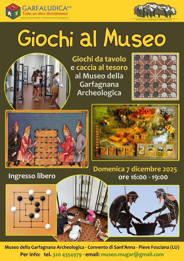 Home Eventi Giochi al MuseoGiochi al MuseoAlle ore 16.00 presso il Museo della Garfagnana Archeologica giochi da tavolo e caccia al Tesoro Scarica la locandina + Aggiungi a Google Calendar + Esporta iCal Data07 Dic 2025 Expired! Ora ? Inizio Evento: 4.0 PM Fine Evento: 7.0 PM Luogo Pieve Fosciana Condividi questo evento