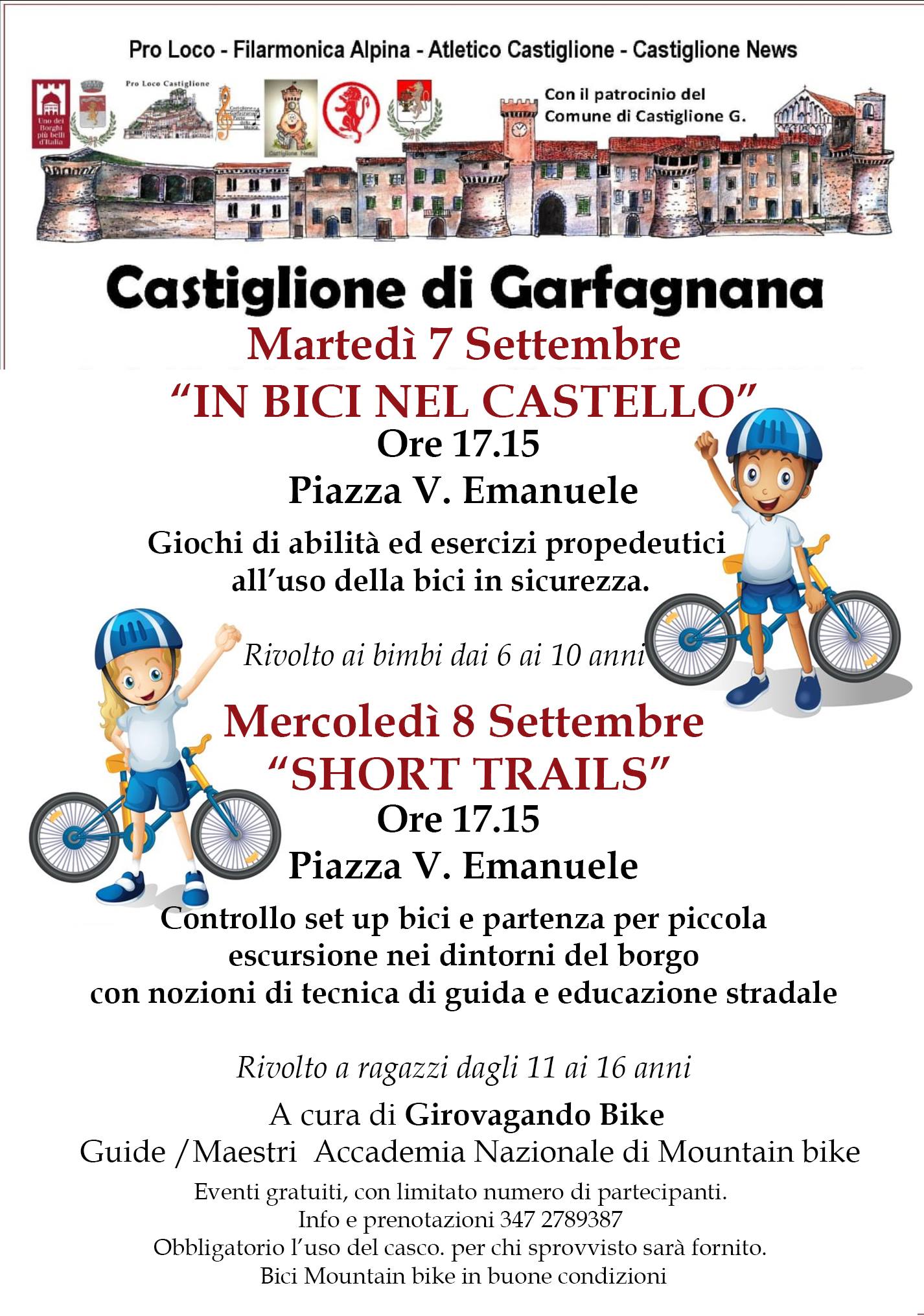 Appuntamento per bimbi/e – ragazzi/e dedicato alla Bicicletta promosso dalle associazioni paesane con la preziosa collaborazione di Girovagando Bike e le guide di Mountainbike Alice e Jacopo!