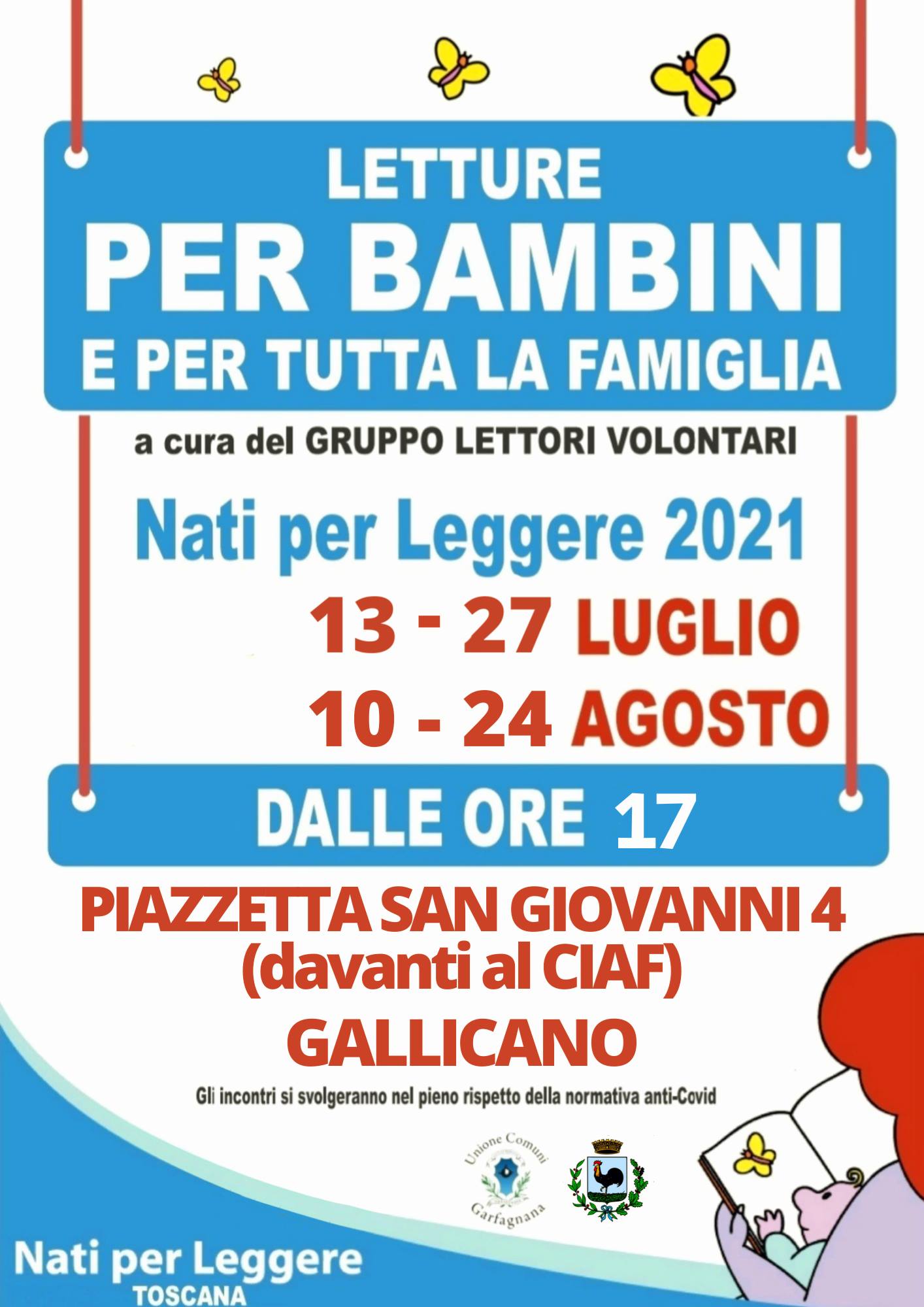 Dalle ore 17:00 “Letture per bambini e per tutta la famiglia” in Piazzetta San Giovanni a cura del gruppo Lettori Volontari,