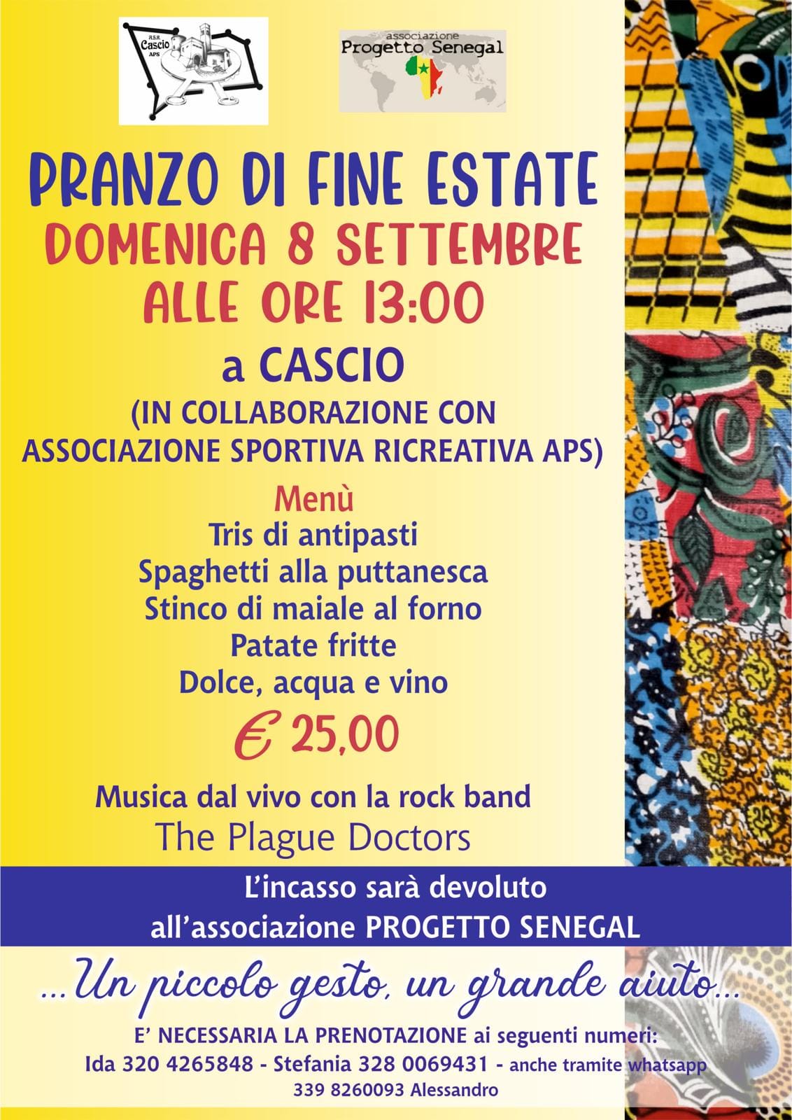 Alle ore 13.00 pranzo di fine estete organizzato dal Ass. Progetto Senegal in collaborazione con Asr Cascio