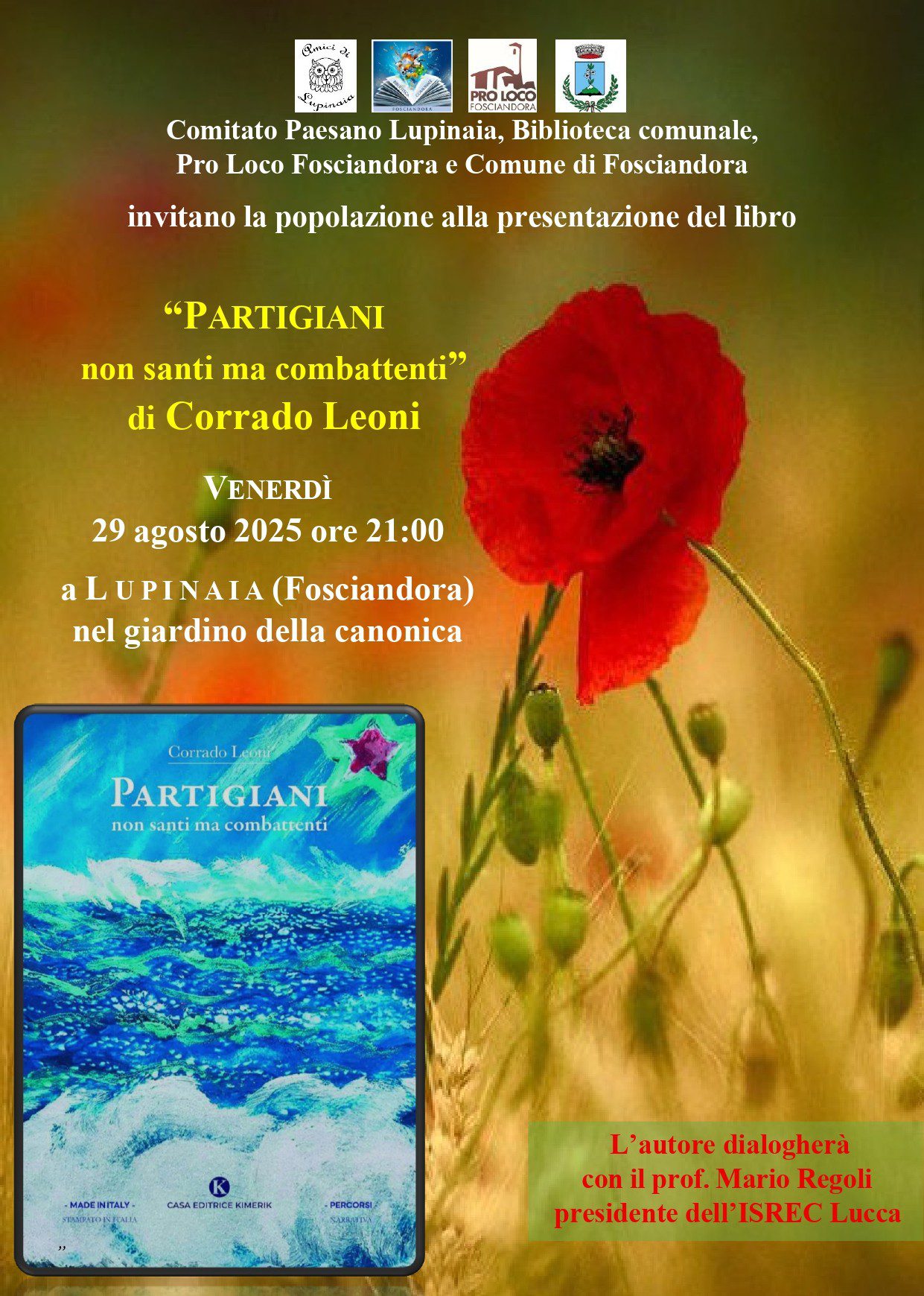 Alle ore 21.00 nel giardino della canonica di Lupinaia si terrà la presentazione del libro “Partigiani non santi ma combattenti” di Corrado Leoni